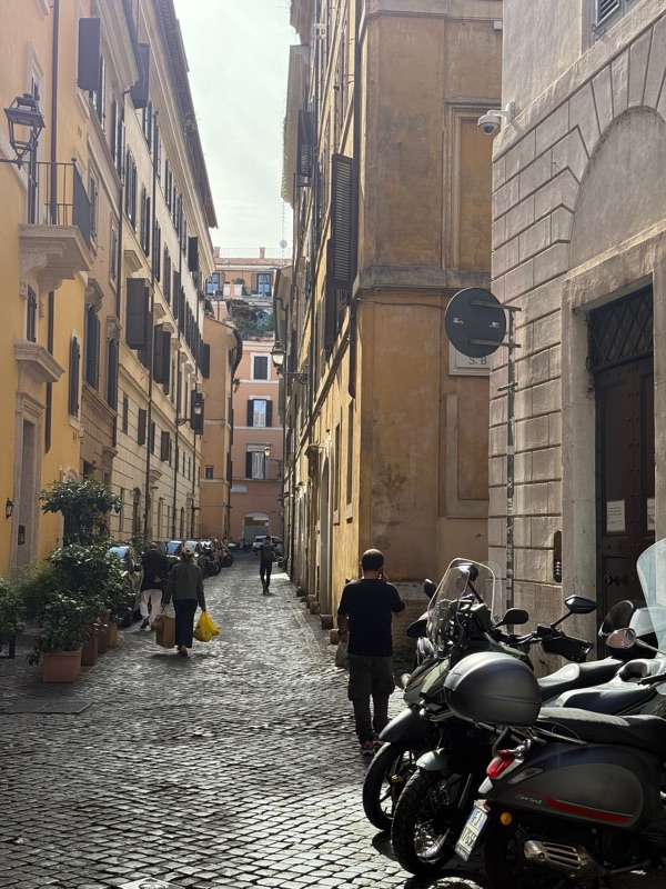 Narrow lanes, Vespas, ruins and the Blessed Virgin Mary everywhere. First day in Rome, 19,000 steps. Ow.