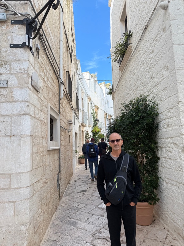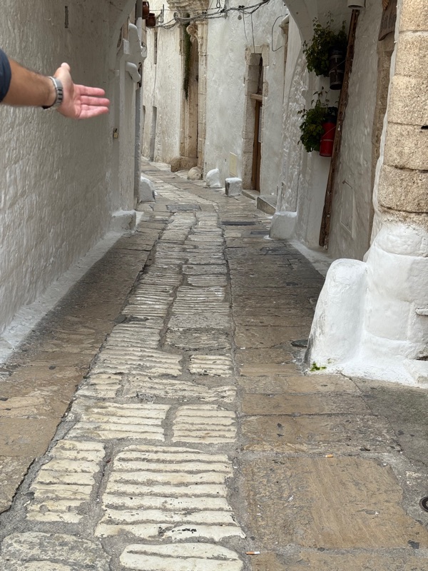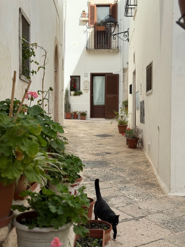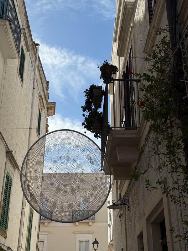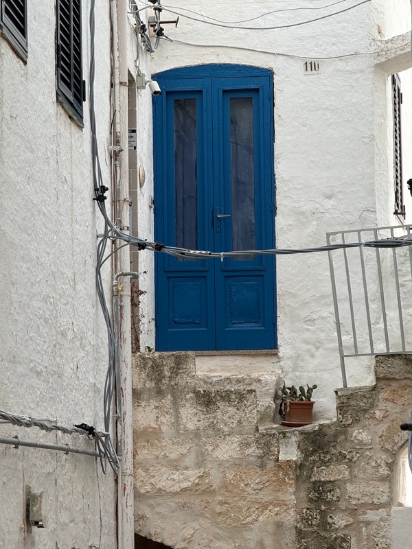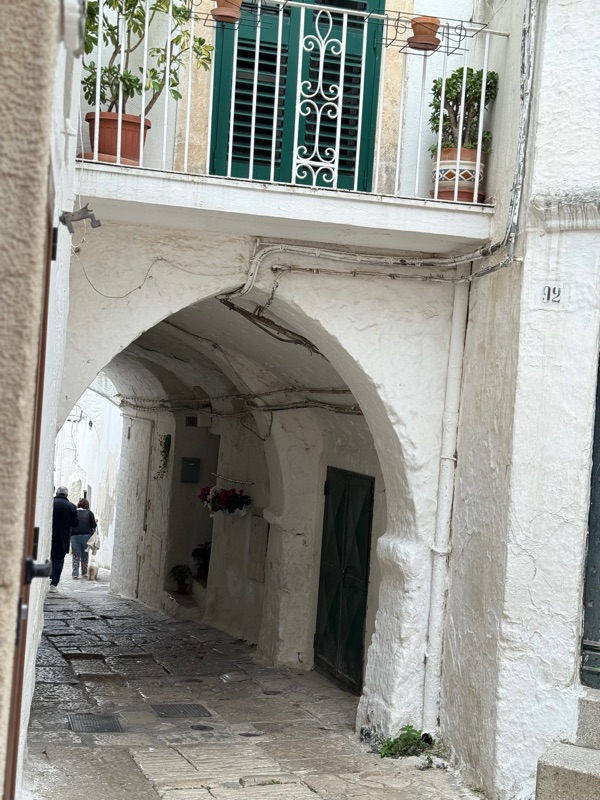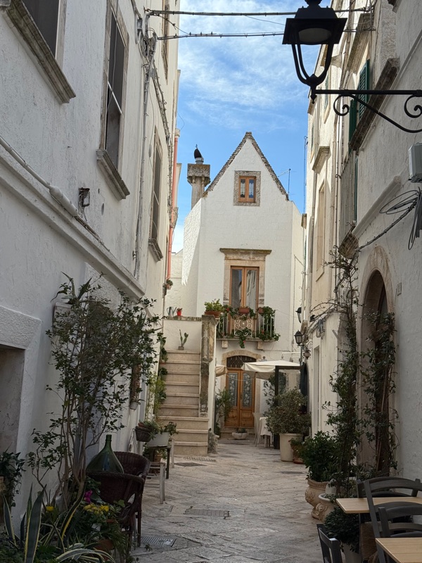 We started with the smallest, a village, really. Locorotondo is one of the prettiest towns I’ve seen in Italy. Sparkling white, narrow alleys, flowers on every porch and balcony.